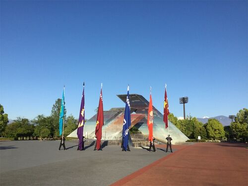 令和元年5月8日(水) 第71回 山梨県高等学校総合体育大会が始まりました。昨年は雨天のため中止となった各校應援團による「一番旗」でしたが、今年は晴天のもと小瀬スポーツ公園噴水広場にて実施することができました。 (噴水広場にて) (体育館前にて) ま…